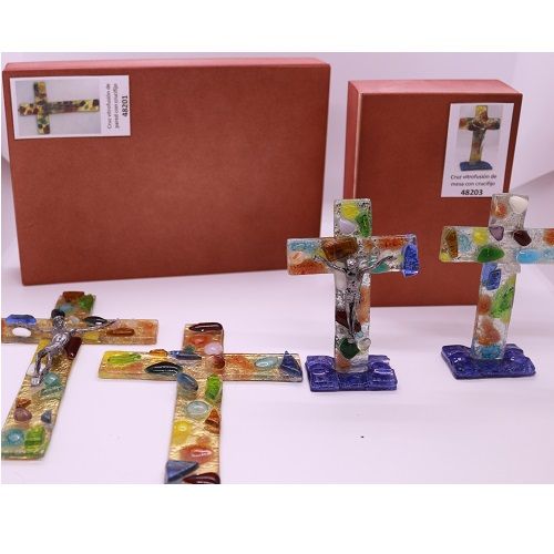 Cruz Vitrofusion De Mesa con Caja de Madera